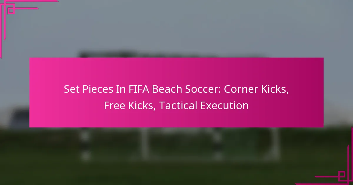 Set pieces in FIFA beach soccer refer to specific situations where the game is restarted after a stoppage, allowing teams to execute planned plays. These include corner kicks and free kicks, which can significantly influence the game’s outcome.